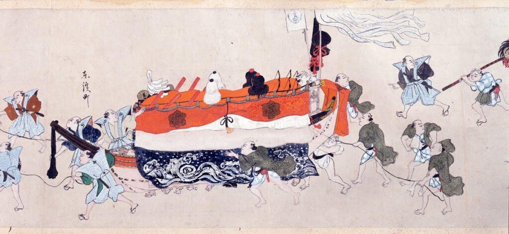 武士に扮した人々や踊り子が続き、観客の歓声が夜空に響き渡ったといいます。