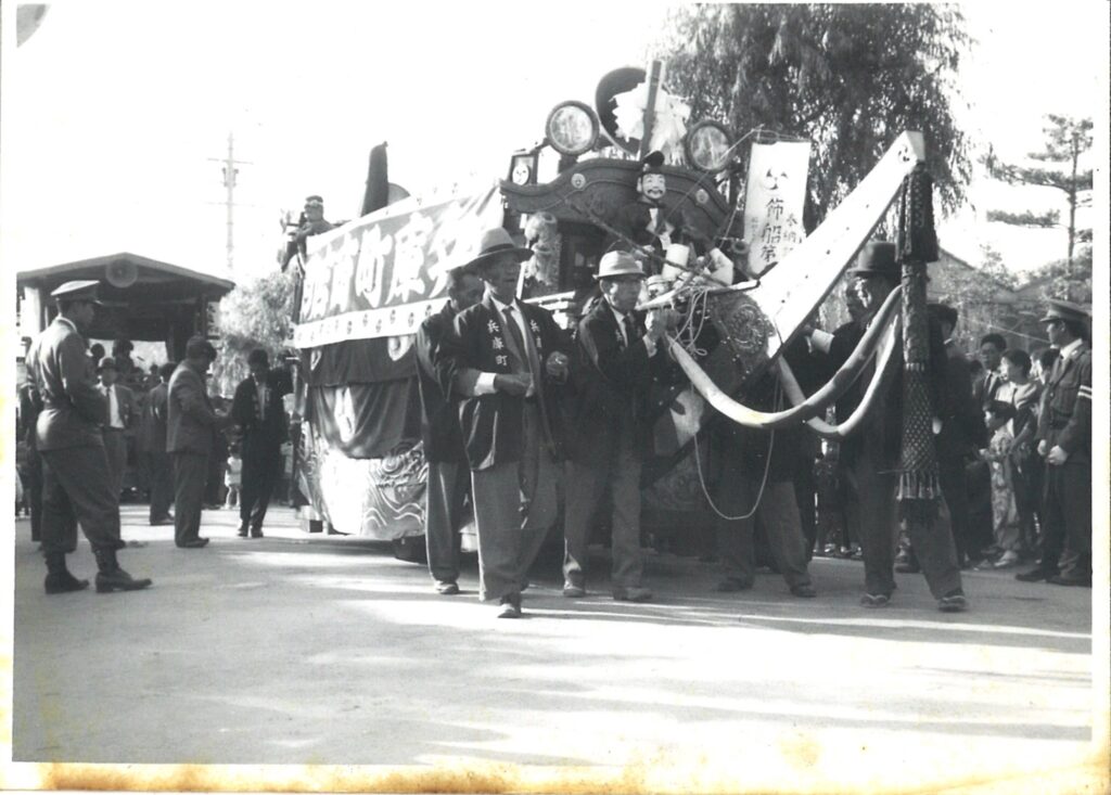 戦前の舟飾りの様子。白黒写真ながら、熱気が伝わってくる。