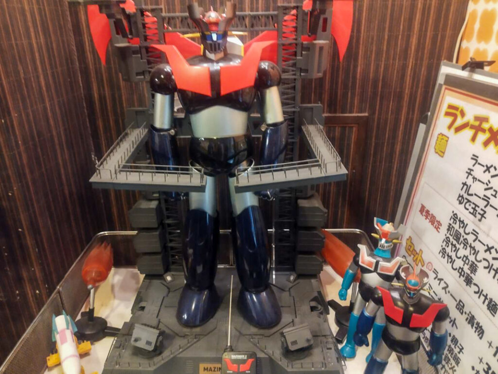 店内には昭和のポスターやファミコン、そして巨大なマジンガーZのフィギュアまで!