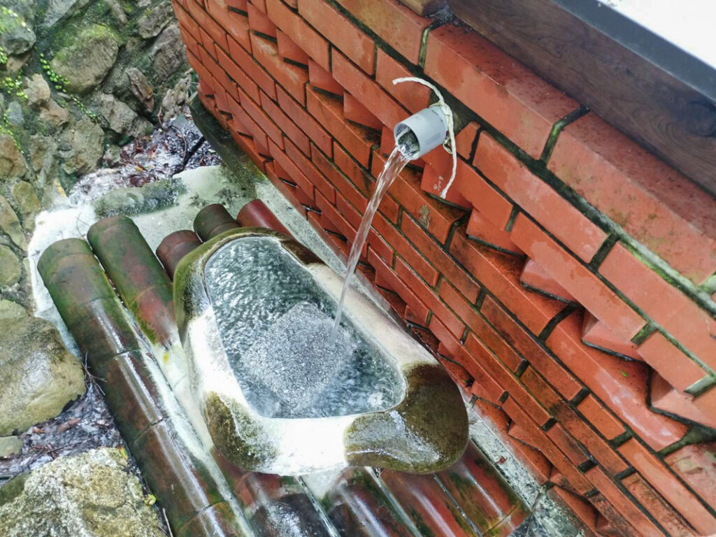 源泉は煉瓦造りの施設からこんこんと湯が流れています。