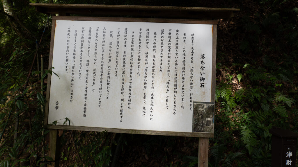 この岩はいつしか「落ちない」にちなんで受験祈願の場として信仰を集めるようになりました。