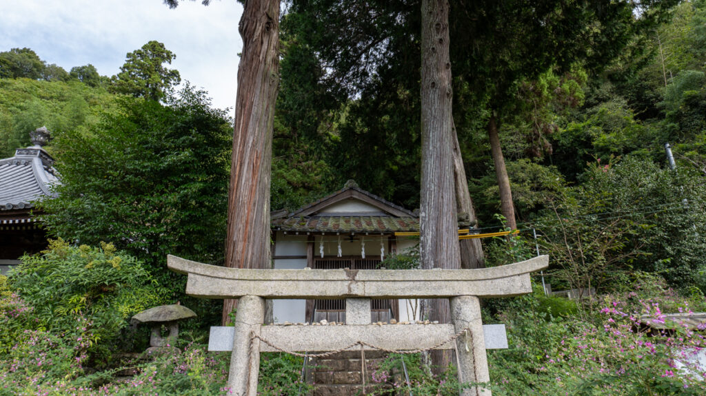 最明寺には那智神社があり、境内には象徴的な二本杉がそびえています。