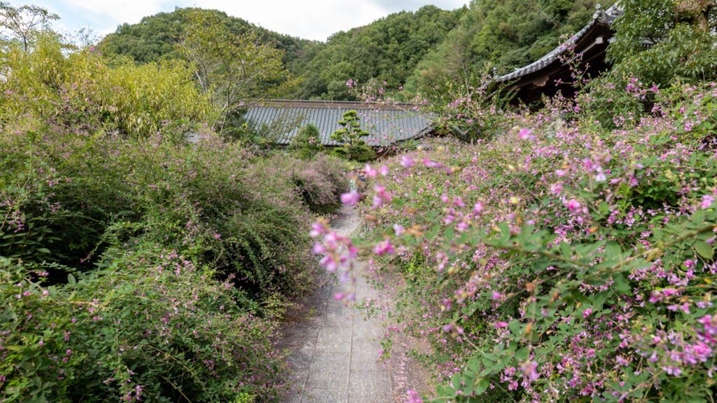 境内へ足を踏み入れると、視界を覆い尽くすほどの萩に囲まれ、本堂さえも隠れてしまうほどの光景が広がります。